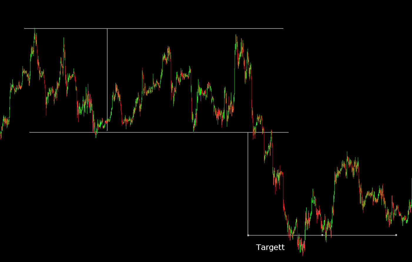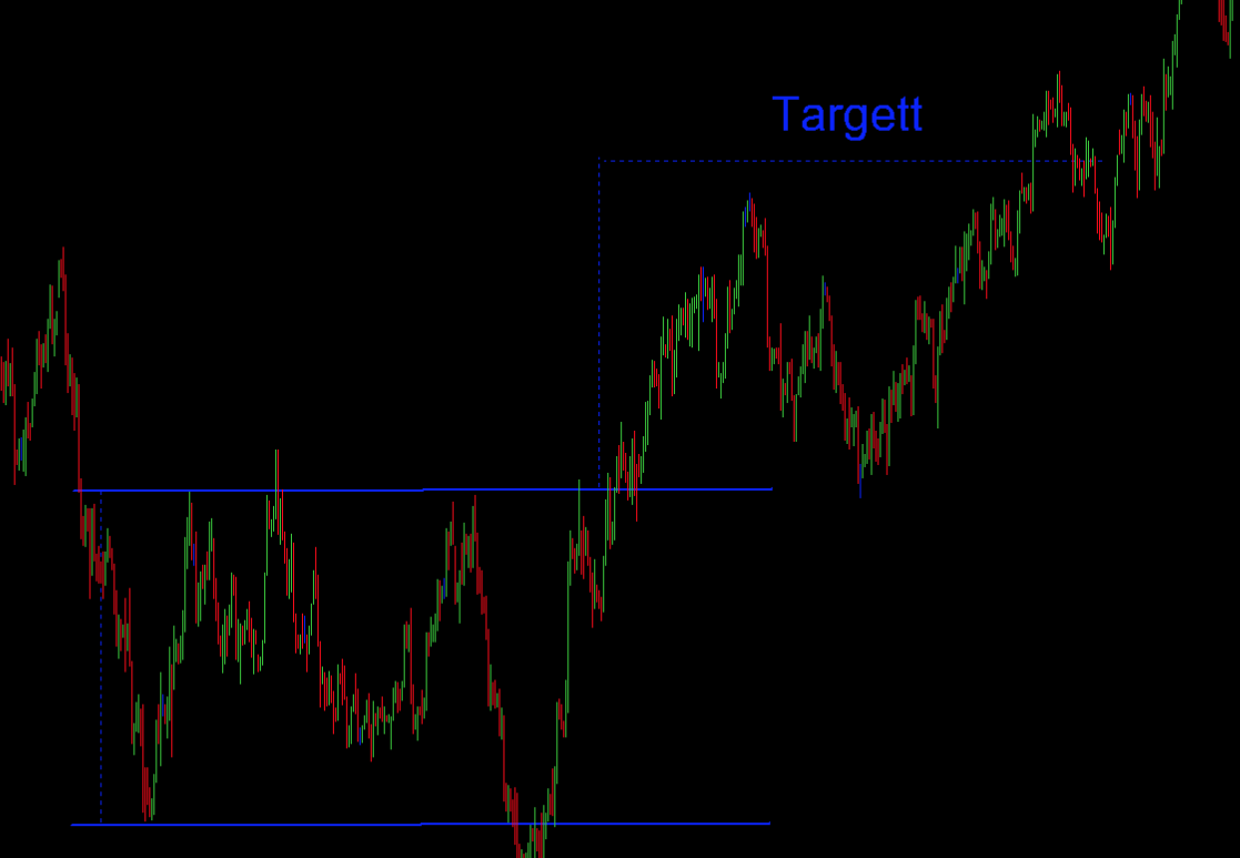 Este rectângulo tem como targett a amplitude do rectângulo medido a partir do ponto de breakout.
